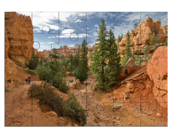 Puzzle en bois représentant le Sentier de Navajo Trail, Parc national de Bryce Canyon, Utah, É.-U. Les arbres sont des Pseudotsuga menziesii et des Pinus ponderosa.