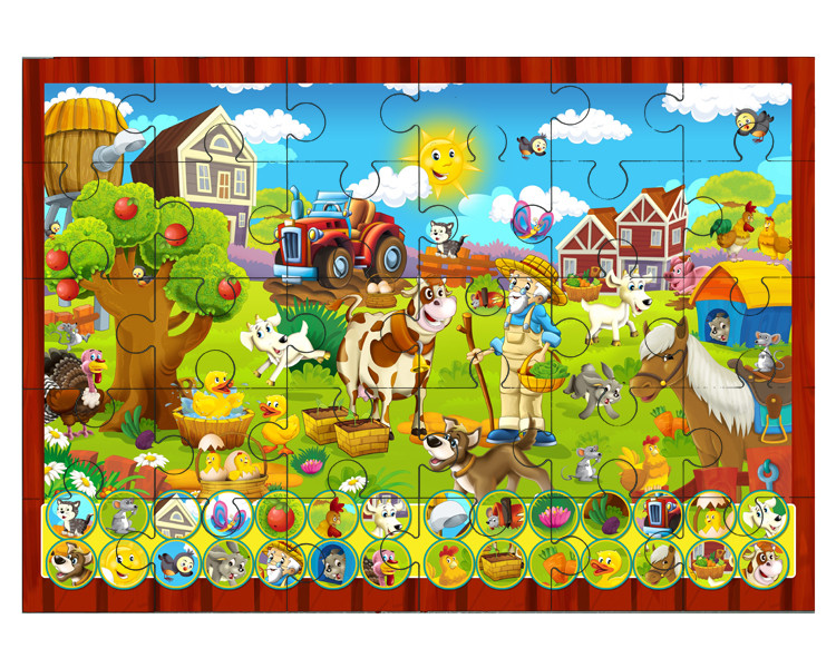 Une fois reconstitué, ce puzzle devient un jeu ou il faut retrouver sur l'image principale les 28 vignettes situées en bas du puzzle, dans les cercles.